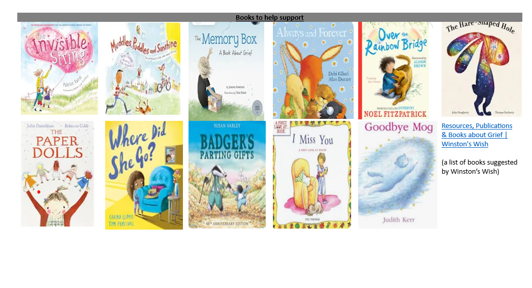We understand that losing a loved one is a very difficult time and grief is very different for individual people. Children will show different behaviours as they process what has happened. It is important to remember that there is no right to my grieve, but support is available.