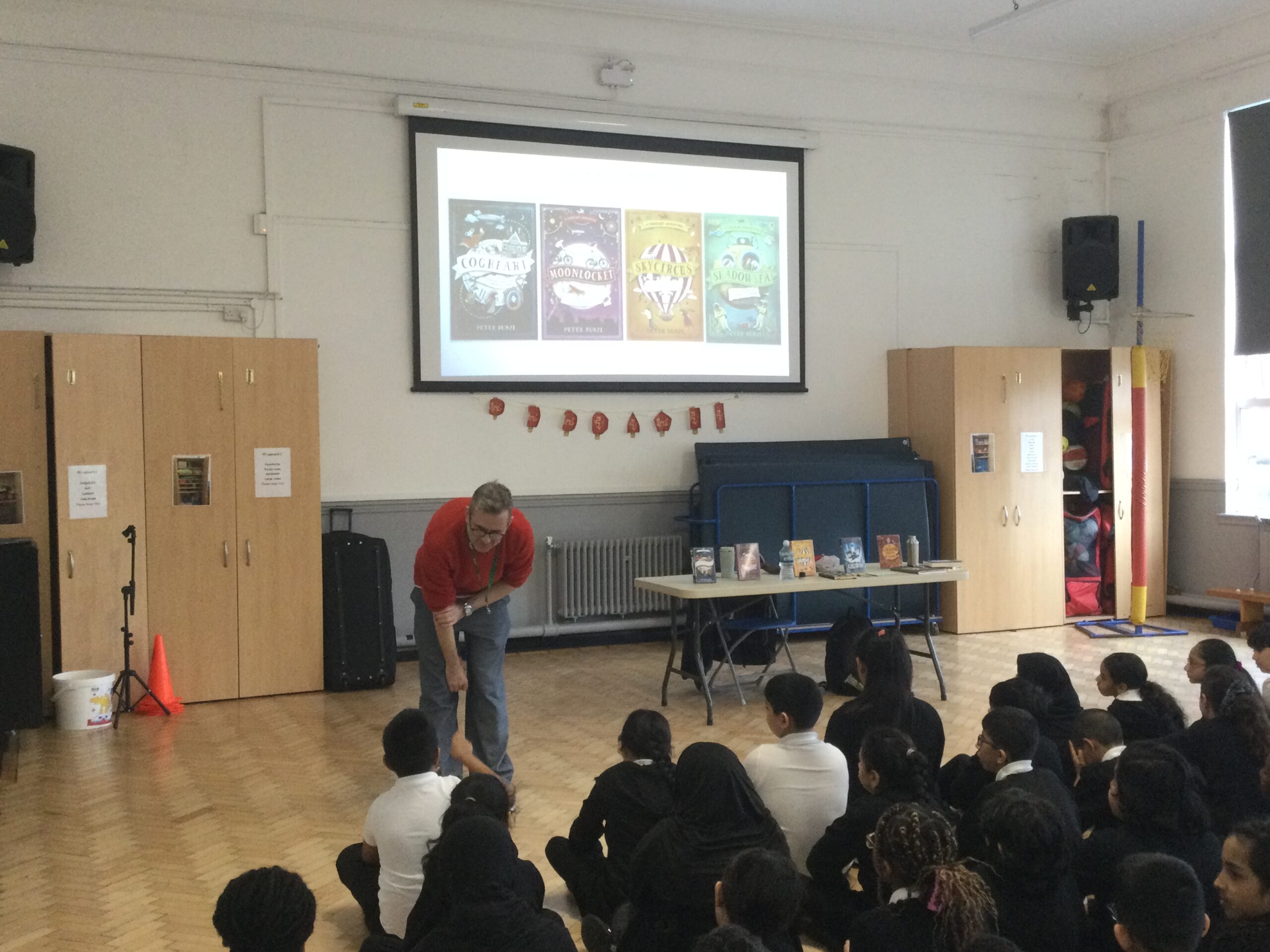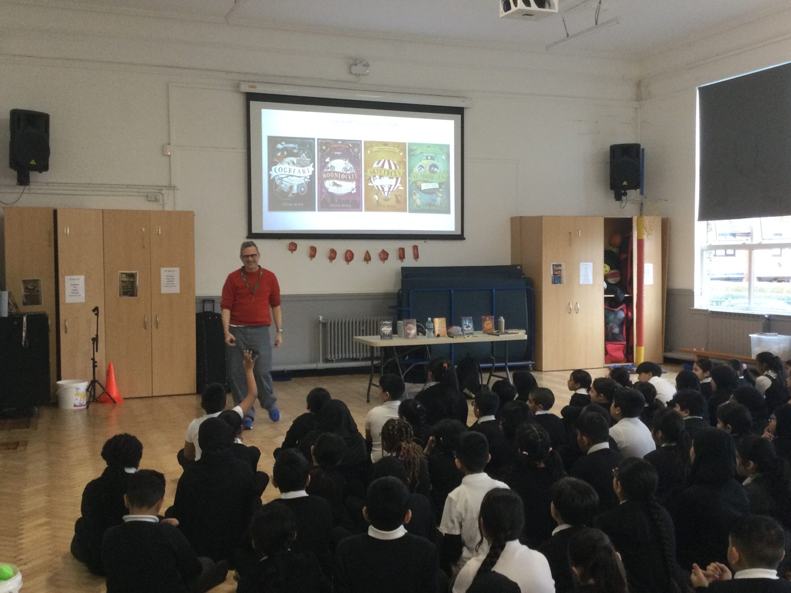 We are thrilled to share that Peter Bunzl visited year 5 and 6 pupils during Book Week March 2026! Peter talked about the inspiration for his books and his characters (some of which are based on himself as a young boy). He talked about the Cogheart series – all pupils in year 5 and 6 had already read Cogheart so were excited to hear about the inspiration behind mechanicals and airships! Following the assembly, he led a workshop for our year 5 pupils where they had the opportunity to write their own book. Following the assembly and workshops, we held a book signing where children had the chance to get their copies of his books signed with a personal message.